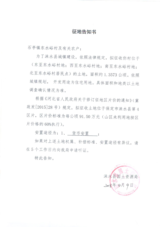 征地告知书(石亭镇东水峪村十三)