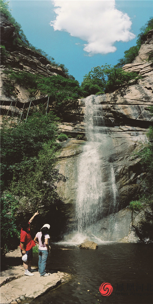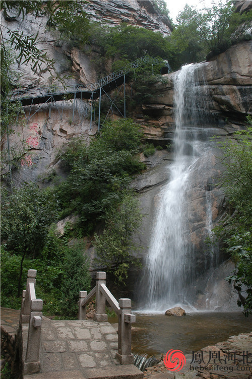 上天沟因景色似天庭圣境而得名,这里自然风光秀丽,沿路树木郁郁葱葱,野花遍地铺开,蜂鸣蝶舞,宛如人间仙境。上天沟属于花岗岩地质,经流水、风化作用,形成了奇特的山石,加以人们妙趣的想象,更加栩栩如生,耐人寻味。不过上天沟最让人留恋的还属九瀑十八潭的壮观,在当地更是有“九瀑不同观,一瀑一重天”的说法,所谓“九瀑”按照海拔从低到高,依次指的是仙界瀑、甘露瀑、天梯瀑、飞龙瀑、思过瀑、神狮瀑、聚神瀑、莲花瀑、银河瀑这九个瀑布,每个瀑布都有其独特的自然景观和人文故事,沿路攀山而上,山水相依,享受着乐山乐水的自在快活。