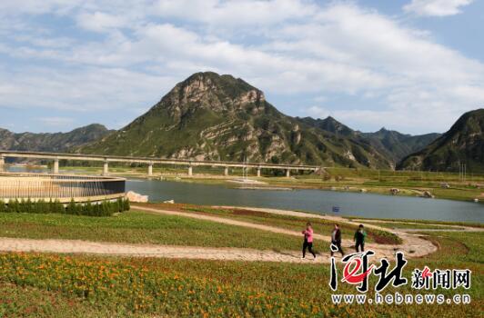 日前,游客在涞水县白涧村拒马河景观带游览。